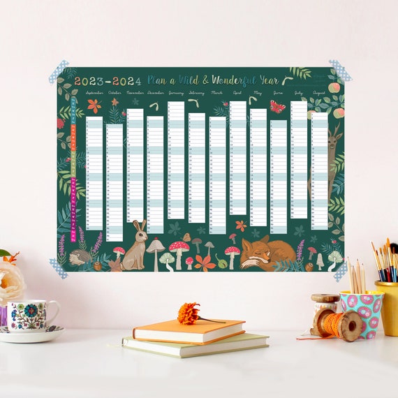 2024 Wall Planner Woodland Wildlife Year to View 2023 to 2024